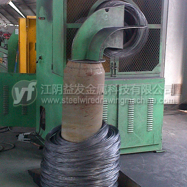 象鼻式收線冷卻方式分為自冷卻與水冷卻兩種,收線方式有普通與梅花型兩種。通常低碳鋼絲采用自冷卻普通型收線,速度≤30M/S,高碳鋼絲與彈簧鋼絲應該采用梅花型水冷卻,收線速度≤12M/S